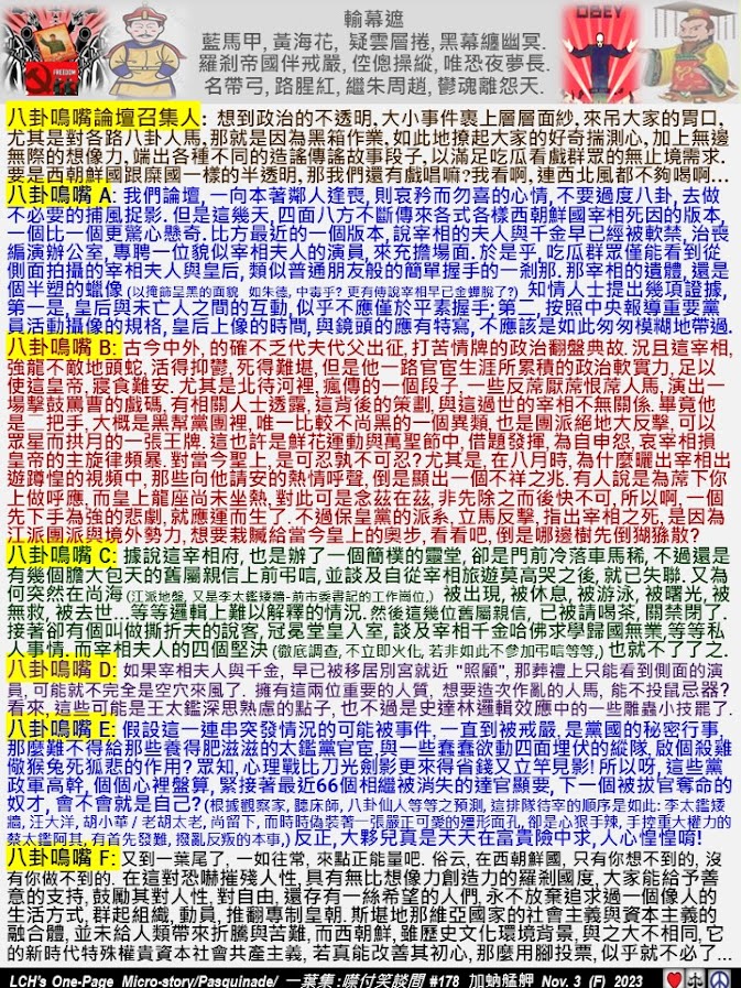 Nov. 27 (M), 2023 HOW -The Art of War ? Is selectingable, and trustworthy politicians for a better society, a luxury, or a daunting chore? 選賢與能, 講信修睦...